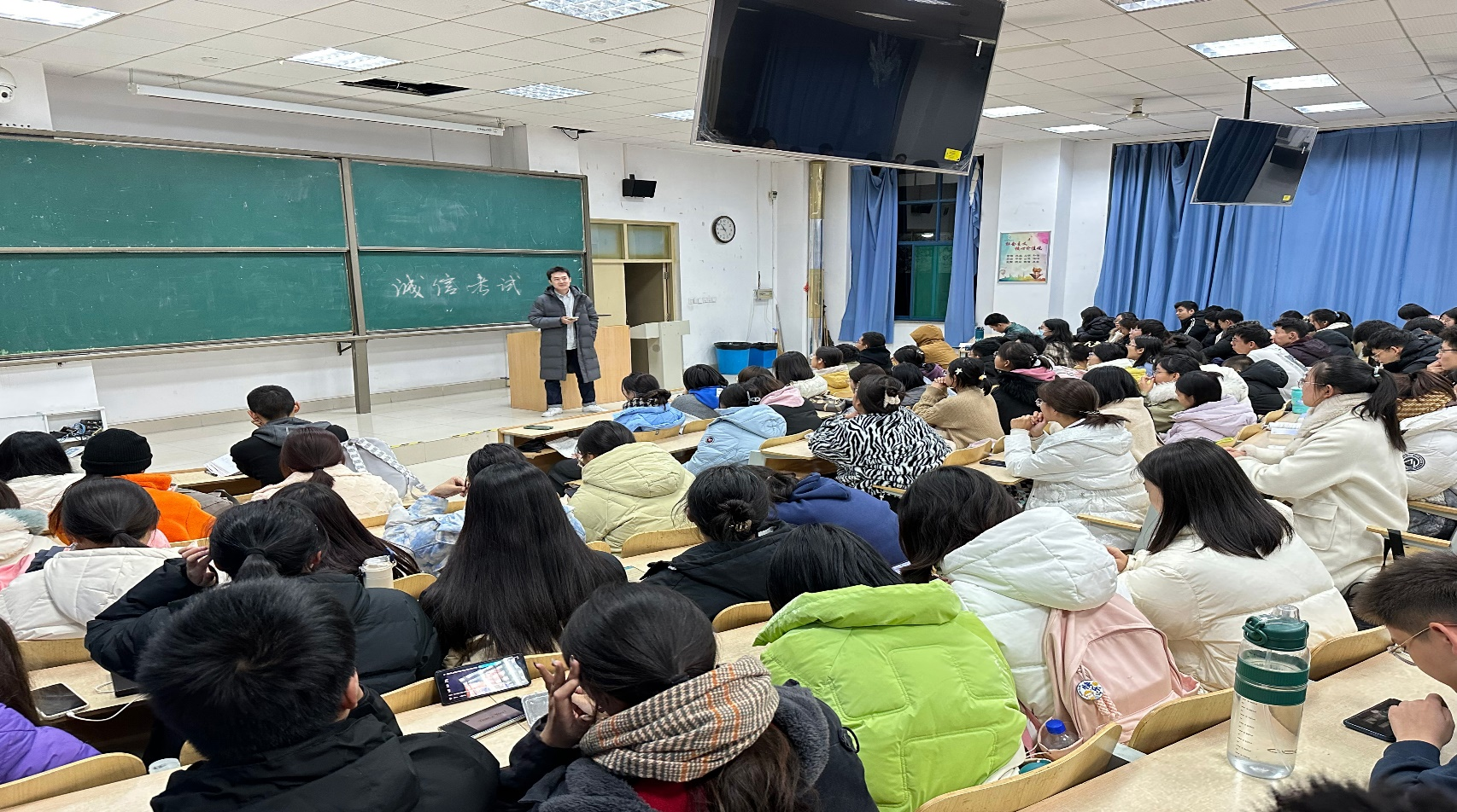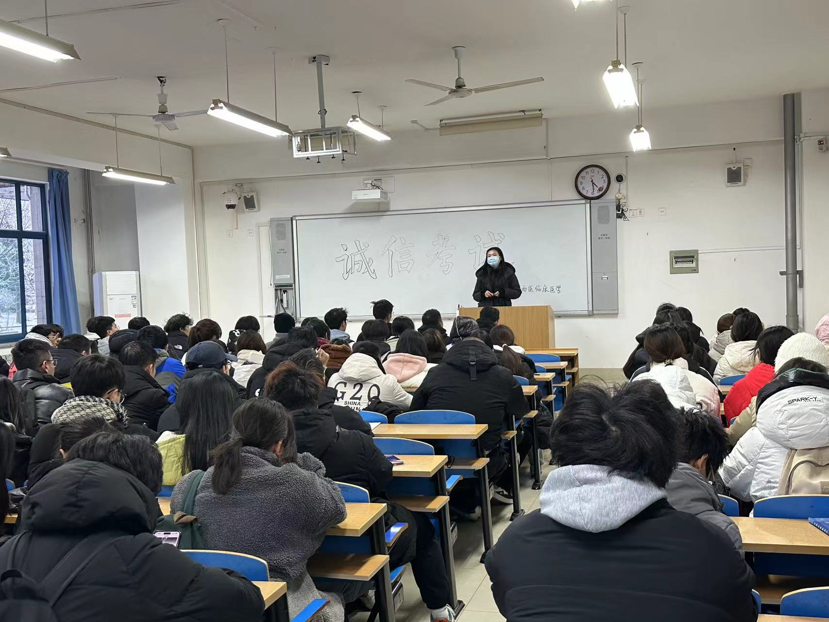 团总支书记胡晓飞主持,结合2023届学位授予工作和考试工作中的典型案例,再次申明考试目的、纪律和要求,教育学生端正态度,诚实应考,杜绝考试违纪及作弊现象的发生,希望广大学生“老实做人、踏实做事”,从自我做起,以诚信的态度迎接每一场考试。