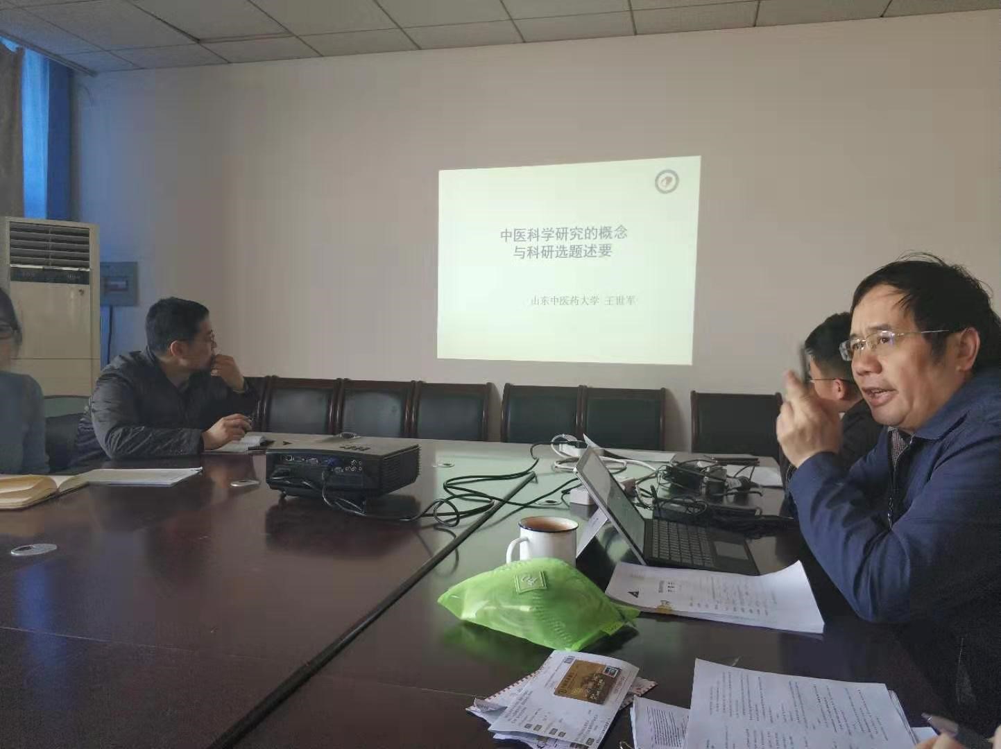科研水平,实现科研资源共享等问题进行讨论,并围绕“中医科学研究的概念与科研选题述要”主题进行专题讲座。