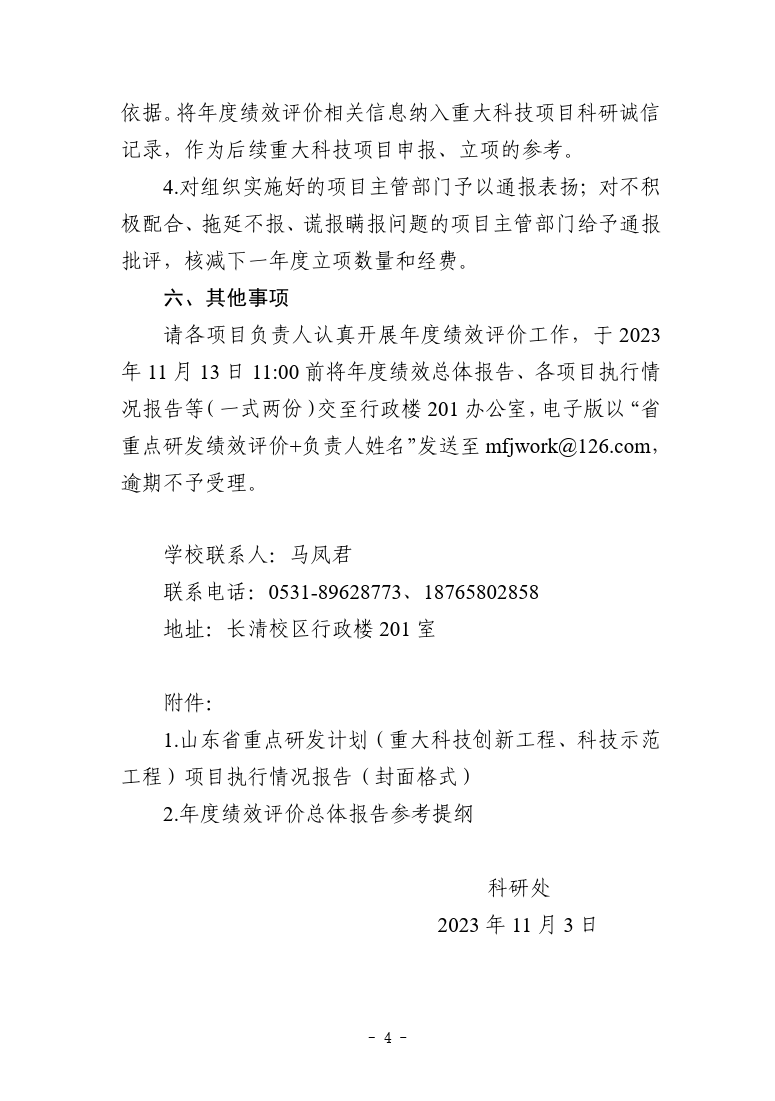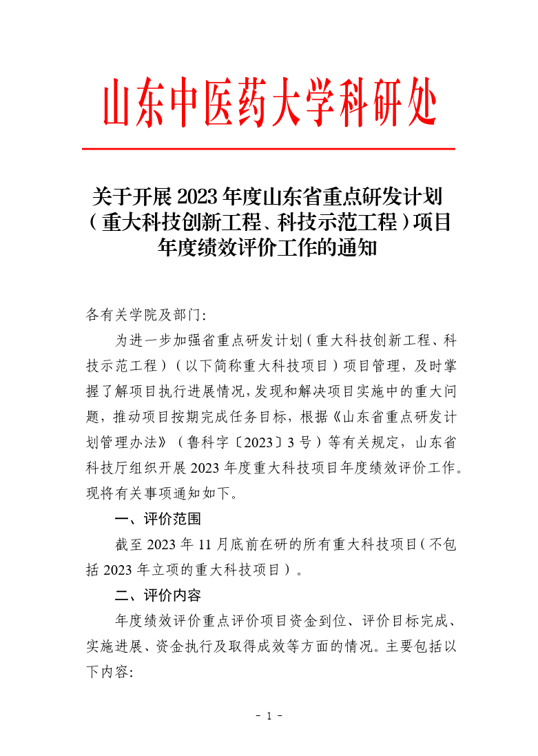 关于开展2023年度山东省重点研发计划(重大科技创新工程、科技示范工程)项目年度绩效评价工作的通知