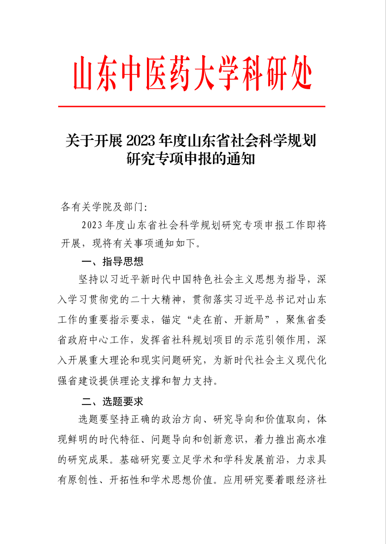 关于开展2023年度山东省社会科学规划研究专项申报的通知