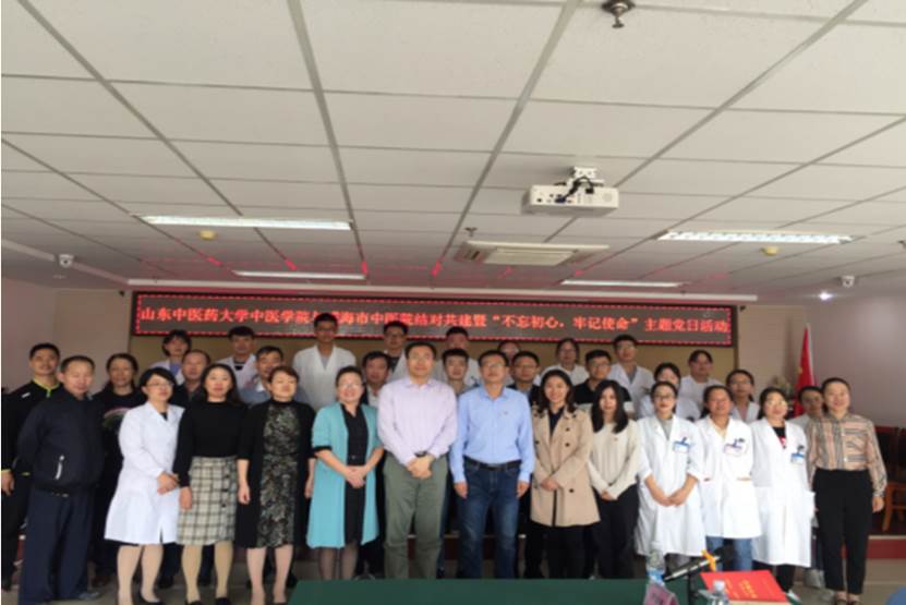 分别与烟台市中医院、威海市中医院、青岛市中医院举行结对共建仪式,成立实习学生流动党支部,并共同开展了“不忘初心、牢记使命”主题党日活动。