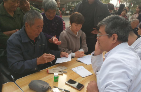专家们为村民试脉开方,对高血压、糖尿病、颈椎病等常见病、多发病进行免费诊疗和悉心指导。