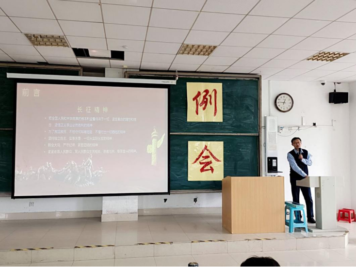 韩辉老师以“长征精神”为切入点,结合血战湘江、飞夺泸定桥、遵义会议等重大历史事件,生动再现了红军长征惊心动魄的事迹、苦难辉煌的历程,讲述了红军为什么长征、长征的内涵是什么和如何走好新时代的长征路,同时号召青年学子向老一辈共产党人学习,学习他们把全国人民和中华民族的根本利益看得高于一切、坚定革命的理想和信念、坚信正义事业必然胜利的精神;学习他们为了救国救民,不怕任何艰难险阻,不惜付出一切的牺牲精神;学习他们顾全大局、严守纪律、紧密团结的精神。韩辉老师还鼓励学生干部要胸怀崇高理想,守纪律、讲原则、作表率,塑造阳光有活力学生干部队伍。