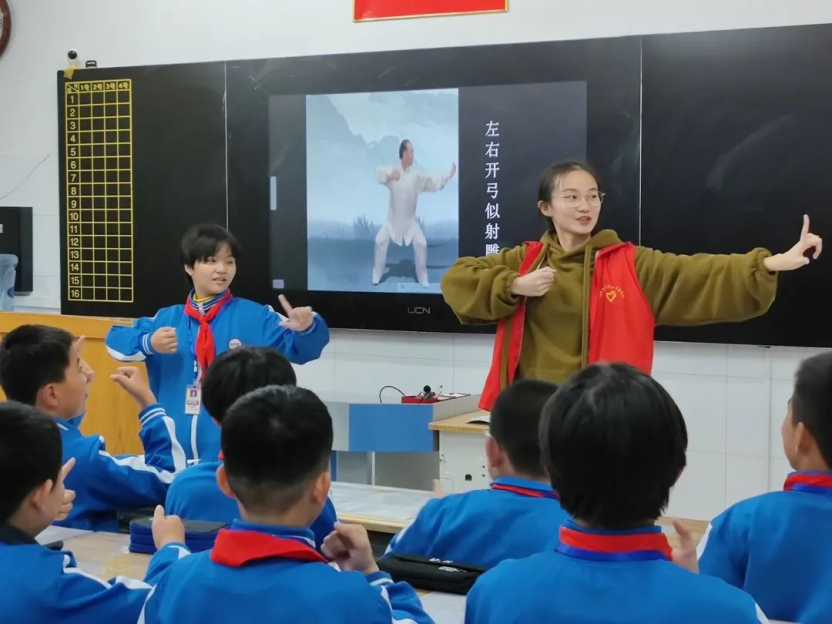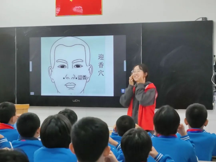 课堂上中医药文化氛围浓厚,同学们认真倾听,和老师们一起探寻中医药文化的奥妙。短短45分钟的小课堂,志愿者们向同学们介绍了丰富的霜降养生知识,在饮食、日常作息、养生保健以及情志心境等方面为同学们提出了许多养生小妙招,并向同学们展示了八段锦、太极拳等一些中医方面的运动,将中医药文化的种子播散在同学们的心中。课后,同学们将我们的志愿者团团围住,提问自己不明白的问题,细心的回答让同学们纷纷点头赞同。