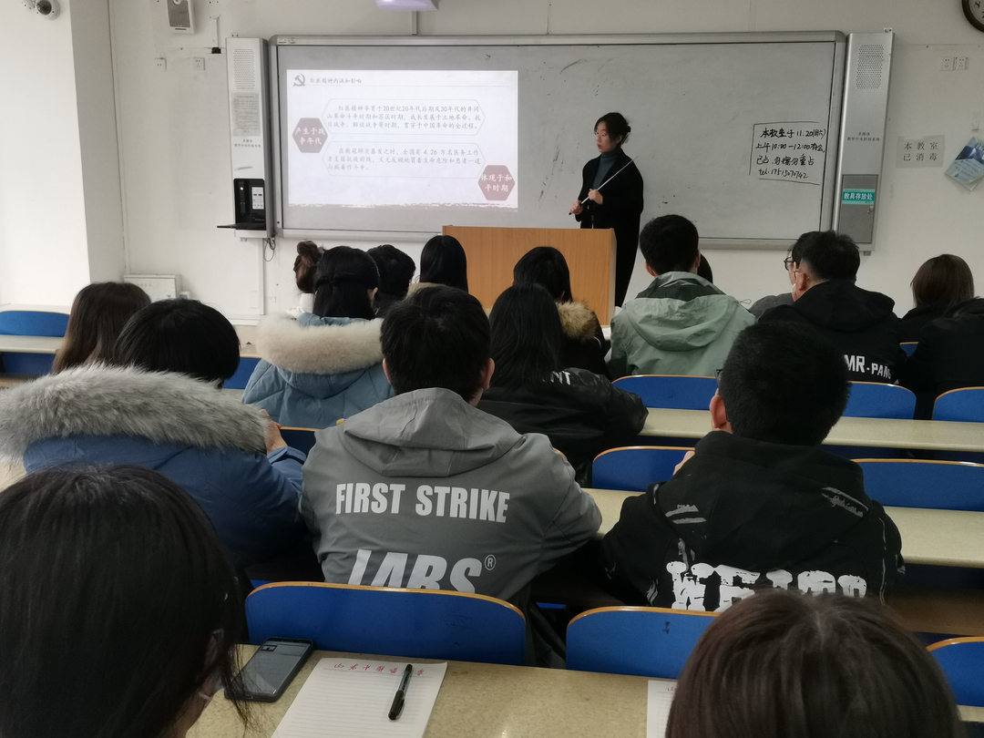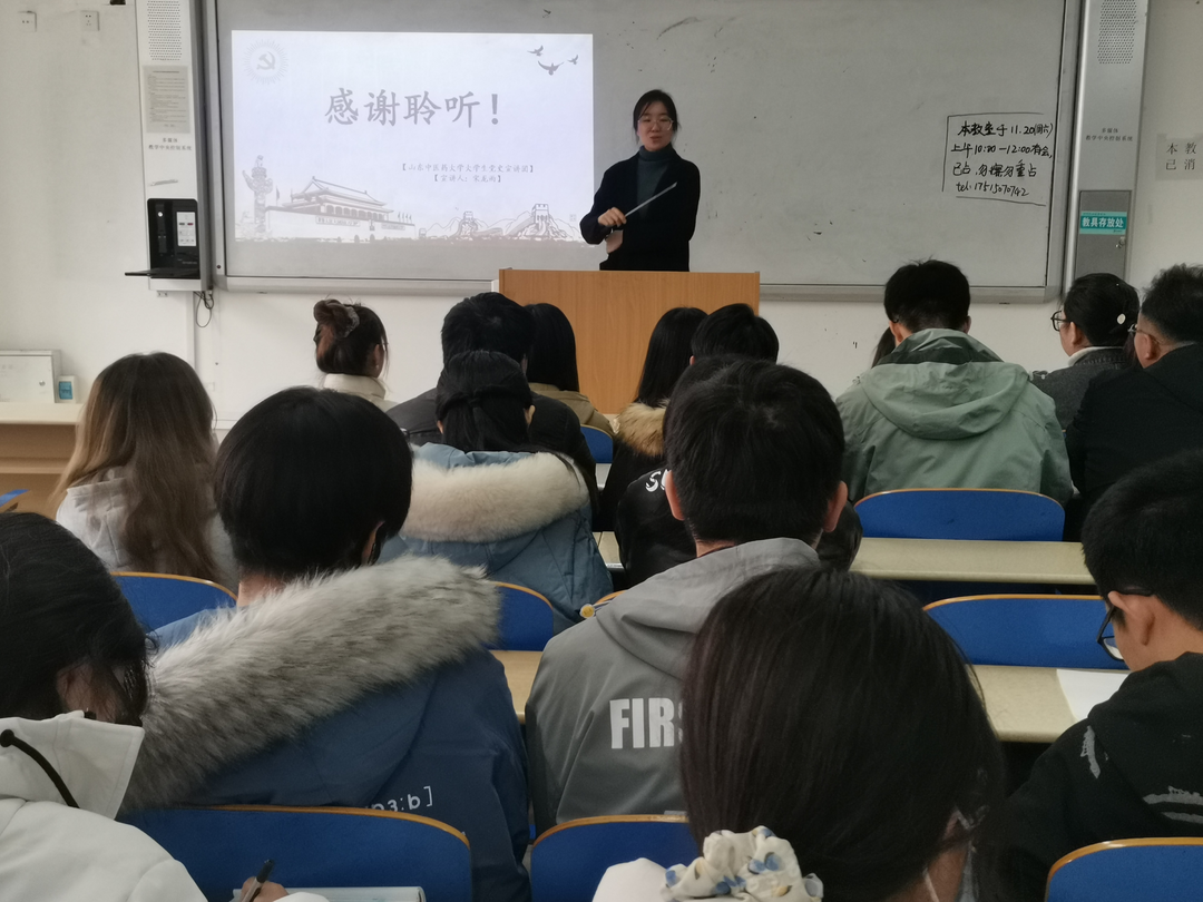大学生党史宣讲团成员宋龙雨在长清校区1208教室举办了党史宣讲活动,给支部内入党积极分子进行了党课培训。