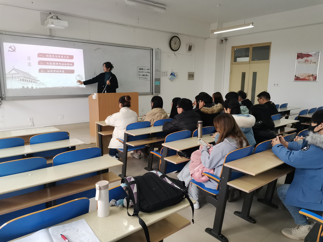 老校长——中医泰斗刘惠民的事迹展开,向同学们讲述了红医精神的深刻内涵,鼓励大家努力把红医精神传承下去、发扬光大。
