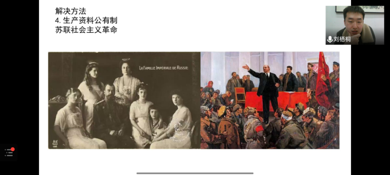 刘老师提到,生产的社会化与资本主义生产资料私有制的矛盾是资本主义的基本矛盾,资本主义的道路与社会公平是对立的。刘老师通过一个简单的经济模型,向同学们解释了资本主义经济模式必然灭亡的现实,并通过列举资本主义国家进行的改良举措,从改良的效果及人类发展总趋势中阐述资产阶级的灭亡是不可避免的,无产阶级会取得最终的胜利。刘老师讲到,中国共产党是中国特色社会主义事业的领导核心,广大人民在党的领导下学习马克思主义,坚定不移地走社会主义道路,以团结一致、吃苦耐劳的精神,投身于社会主义现代化建设,老师希望同学们都能以实现中华民族伟大复兴为己任,有志气、有骨气、有底气,不负时代,不负韶华。