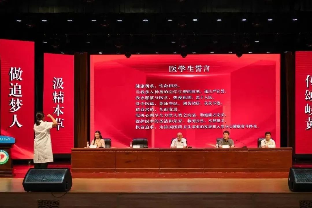赴约的心情十分激动,并表示会传承好“博极医源,精勤不倦”的良好学风、践行好“厚德怀仁,博学笃行”的校训精神,做合格的山中医人。新时代中医学子肩负着传承中医药文化瑰宝的使命,“让中医药智慧持续为国家医疗事业做出独特贡献”是全体同学需要明确的未来目标。杨沫向全体同学提出“团结友爱,尊师重道”、“脚踏实地,行稳致远”、“明确目标,勤学善思”、“学以致用,开拓创新”的倡议,号召大家身着白衣立大志,早日成为栋梁材。