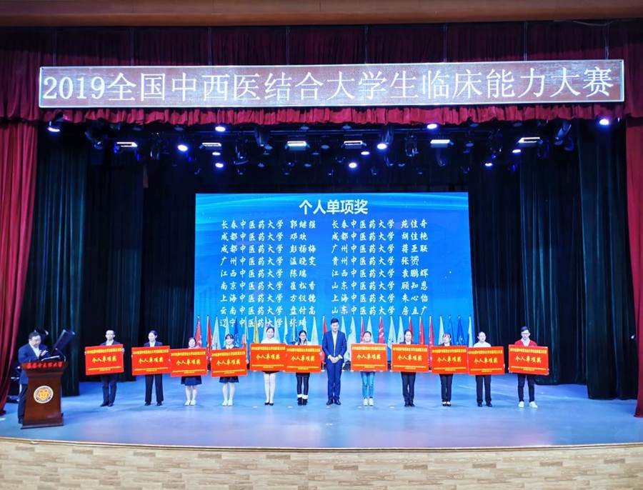 全国中西医大学生临床能力大赛由教育部高等学校中西医结合类专业教学指导委员会主办,长春中医药大学承办,旨在深入贯彻全国中医药大会精神,坚持中西医并重,改革完善中西医结合教育,培养高层次中西医结合人才。本次大赛分为初赛、复赛、决赛三个赛程,内容涵盖中医基础理论、中医诊断学、中药学、方剂学、针灸推拿学、中医经典、西医诊断学、药理学、急救技能、中西医结合内科、中医西结合外科等课程项目。本次大赛共有来自全国的29支队伍116位选手参加,评出特等奖一项,一等奖三项,二等奖六项。