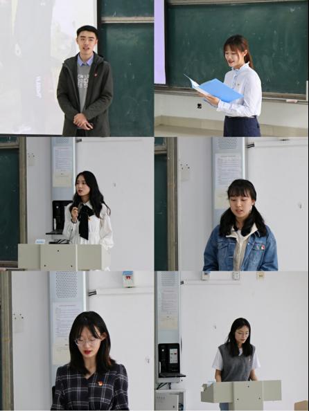 团的代表大会团代表于冰清、山东省青年马克思主义培训班“优秀学员”刘艺璇、王琳雅、赵世荣,他们分别以“鼎彝元赖生成力——中国共产党领导下的脱贫攻坚胜利”、“将军梦,守护情——将军夫人当农民”、“重温革命历史,一根灯芯照亮中国”、“那年的五四,那时的青年”、“回望峥嵘岁月,坚守初心使命——一个红枣也不能动”、“百年党史照亮光明前路”五个主题,带领青年学生重温党的百年历史。