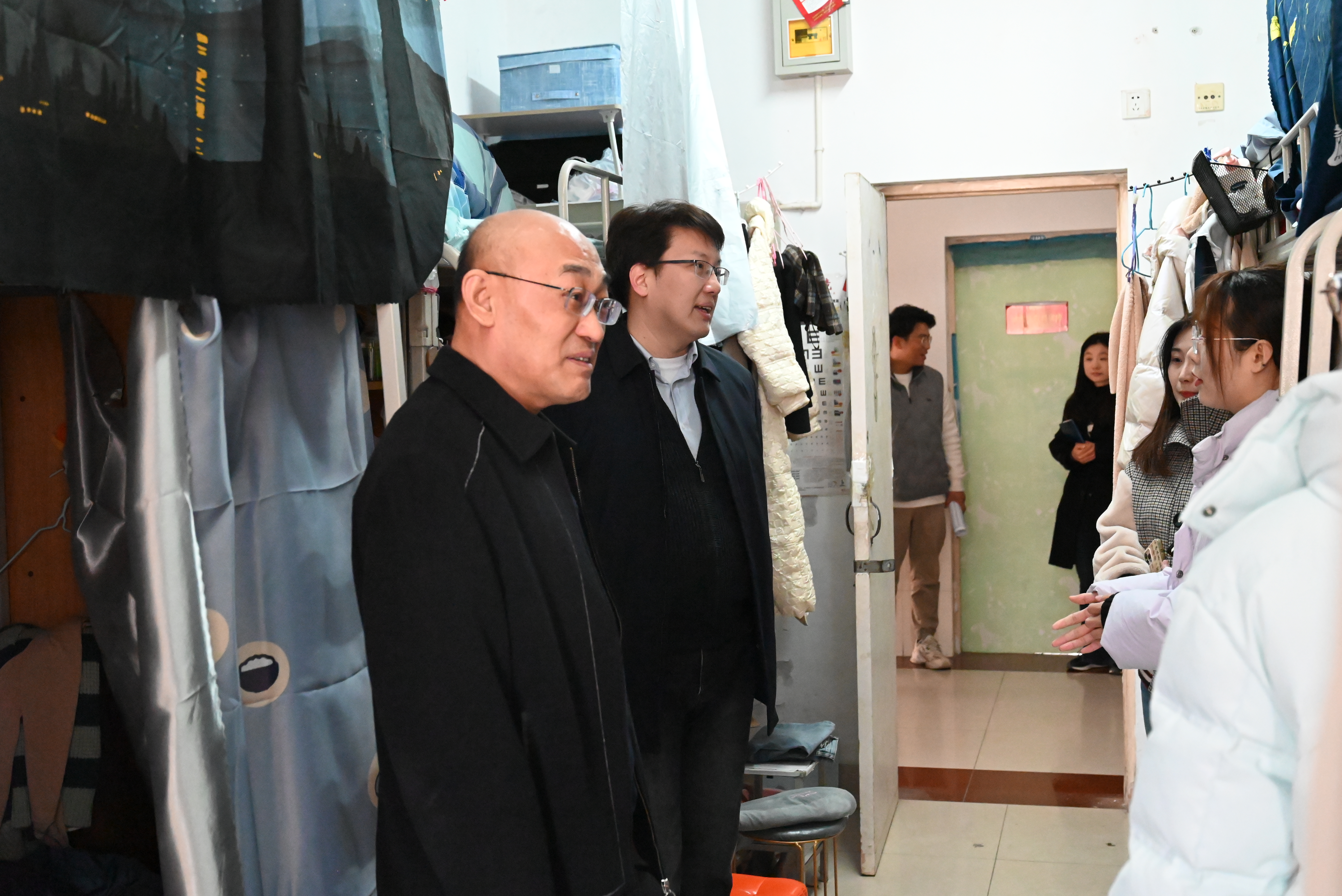 在长清校区,姜锡斌针对宿舍卫生和可能存在的安全隐患等细节对同学们提出了建议和要求,并与学生进行深入交流,了解学生的思想动态、关怀学生学习生活状况。叮嘱学生要科学安排日常生活,保持良好的宿舍卫生,坚持劳逸结合、注重身体锻炼,提高学习效率,加强与辅导员的沟通交流。