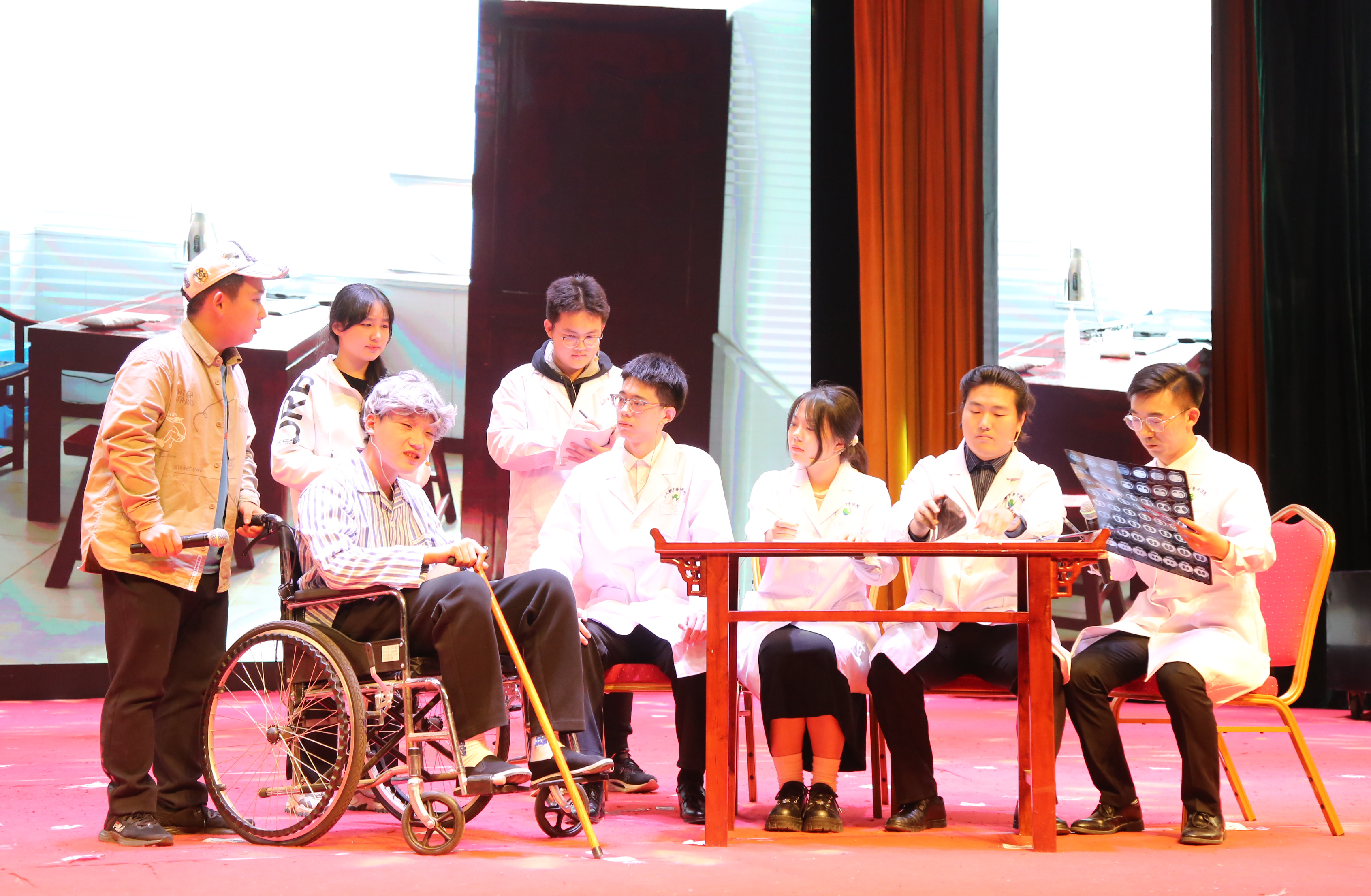 文艺汇演在舞蹈《美丽中国》中拉开帷幕,器乐合奏《灯火里的中国》抒发了对祖国的无限深情和美好祝福;朗诵《穿越时空的对话》讴歌了五千年中医文化的无穷魅力;歌曲《理想照耀青春》《燃烧》《神奇中医》以青春之名唱响信仰的力量;情景剧《小王的临导制日记》再现了学生与临床导师共论病例、共研方案、共面挑战的温情瞬间;模特走秀《绽放》等精彩的节目为观众呈现了丰盛的视听盛宴;舞蹈《雨涧春行图》《京韵》用灵动的舞姿展现了中医学子朝气蓬勃、青春激昂的精神风貌;演出在师生合唱《强国一代有我在》中完美谢幕。本次汇演节目涵盖了器乐合奏、歌曲、舞蹈、朗诵、情景剧等等多种节目类型,节目形式丰富、内容充实,反响热烈。