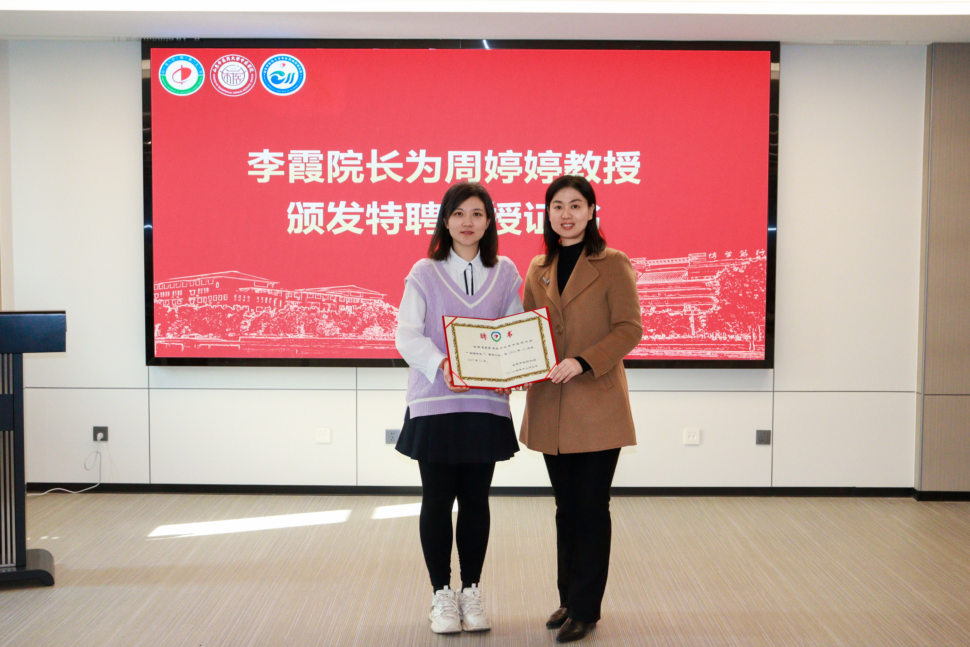 会后,院长李霞为周婷婷教授颁发了特聘教授证书。