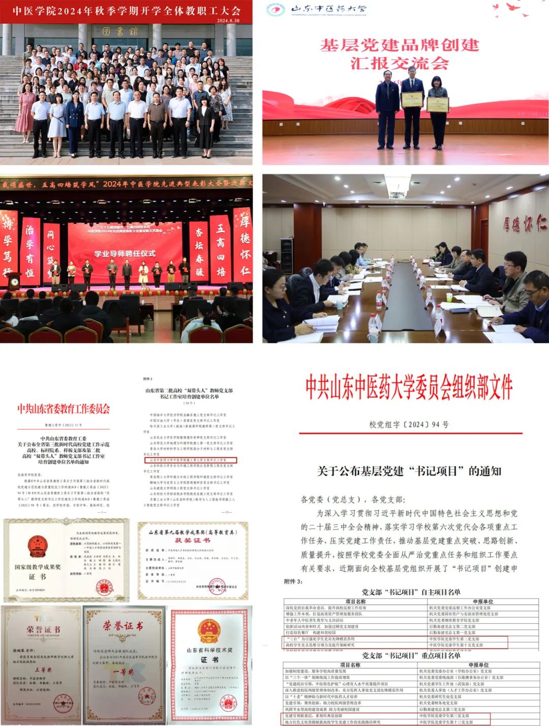 以党的创新理论为“养元之本”,扎实推进党的建设各项工作。聚焦思想建设,深入学习宣传贯彻习近平新时代中国特色社会主义思想和党的二十届三中全会精神,集中开展“解放思想大讨论”活动,宣传贯彻学校第六次党代会提出的“一三五七五”发展思路。抓实纪律作风,全面开展党纪学习教育,认真落实集中学习、警示教育、案例剖析、对照检查等要求。提升工作质效,获全国中医药高等学校思政年会一等奖;教工第七党支部获评全省高校“双带头人”教师党支部书记工作室培育创建单位;入选学校二级党组织“书记项目”1项、党支部“书记项目”2项,“一院一品”校园文化建设项目1项;获学校基层党建品牌创建交流评比活动一等奖。