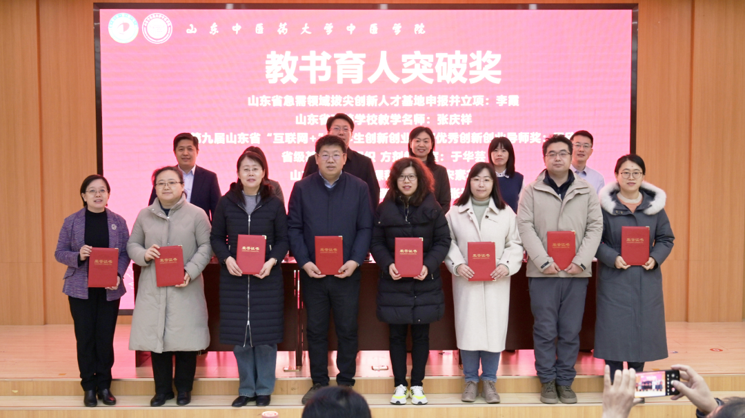 先进表彰。与会领导为获得科技创新突破奖、人才项目突破奖、教书育人突破奖、重点工作推进贡献奖和研育赋能杰出奖的集体和个人颁奖。