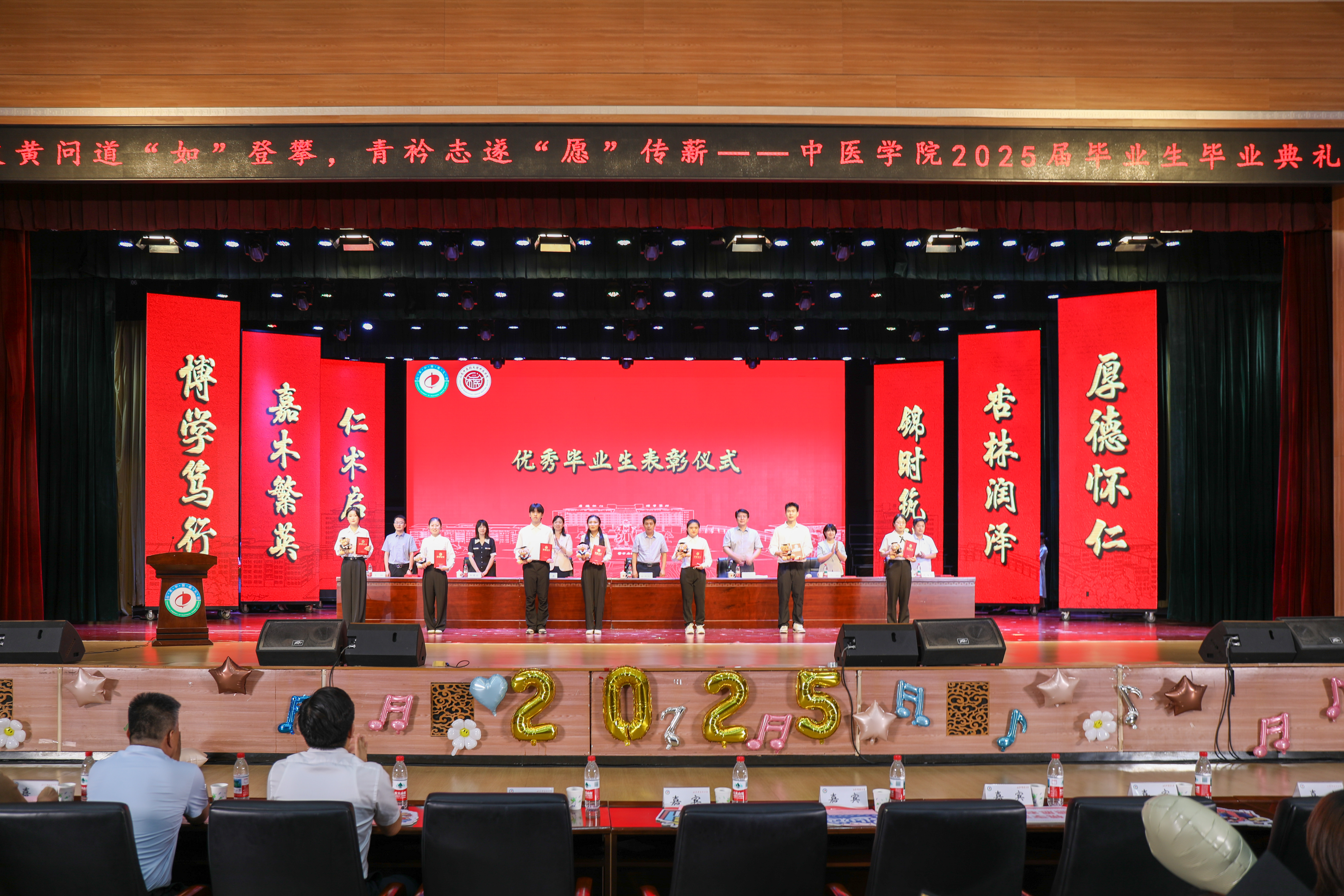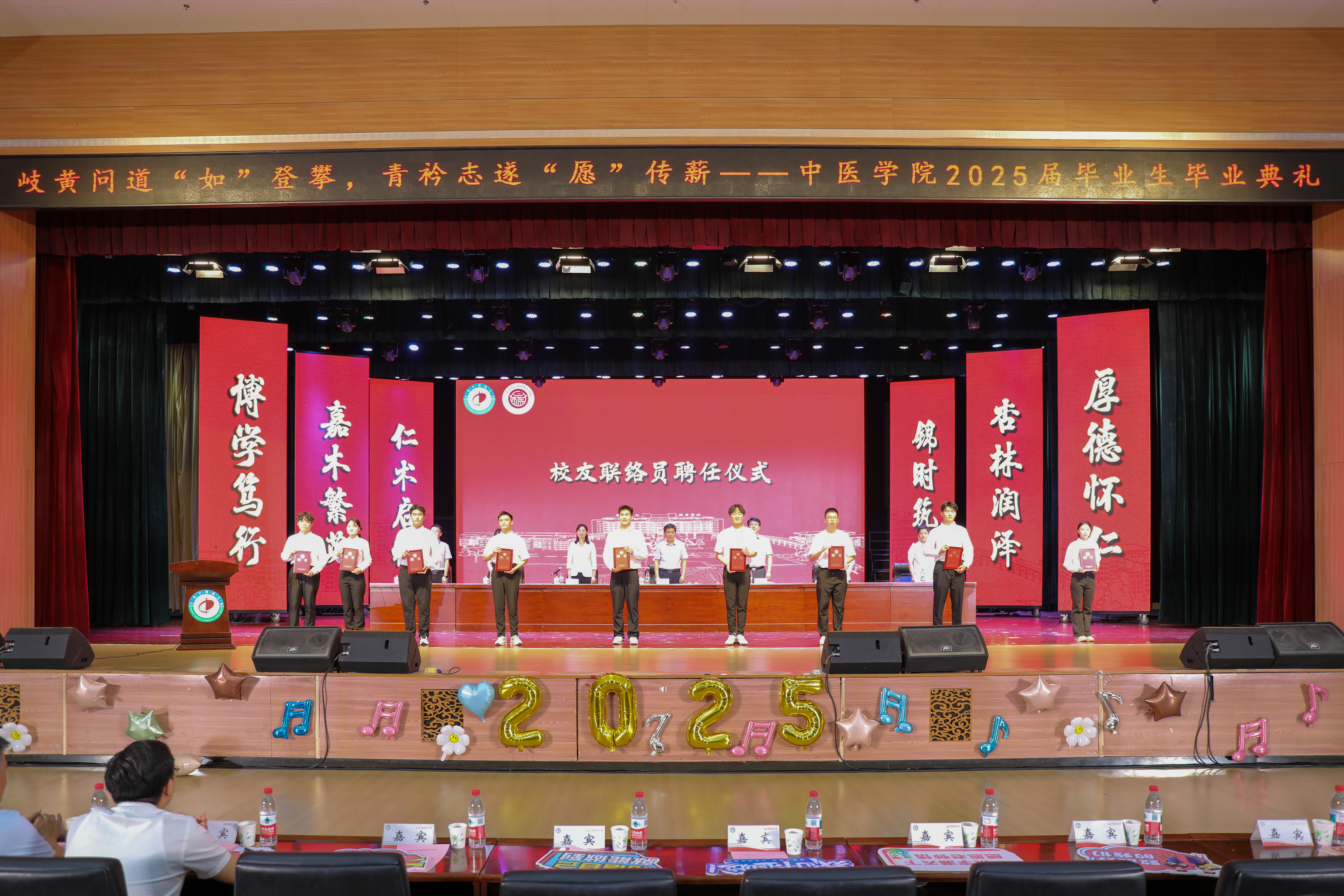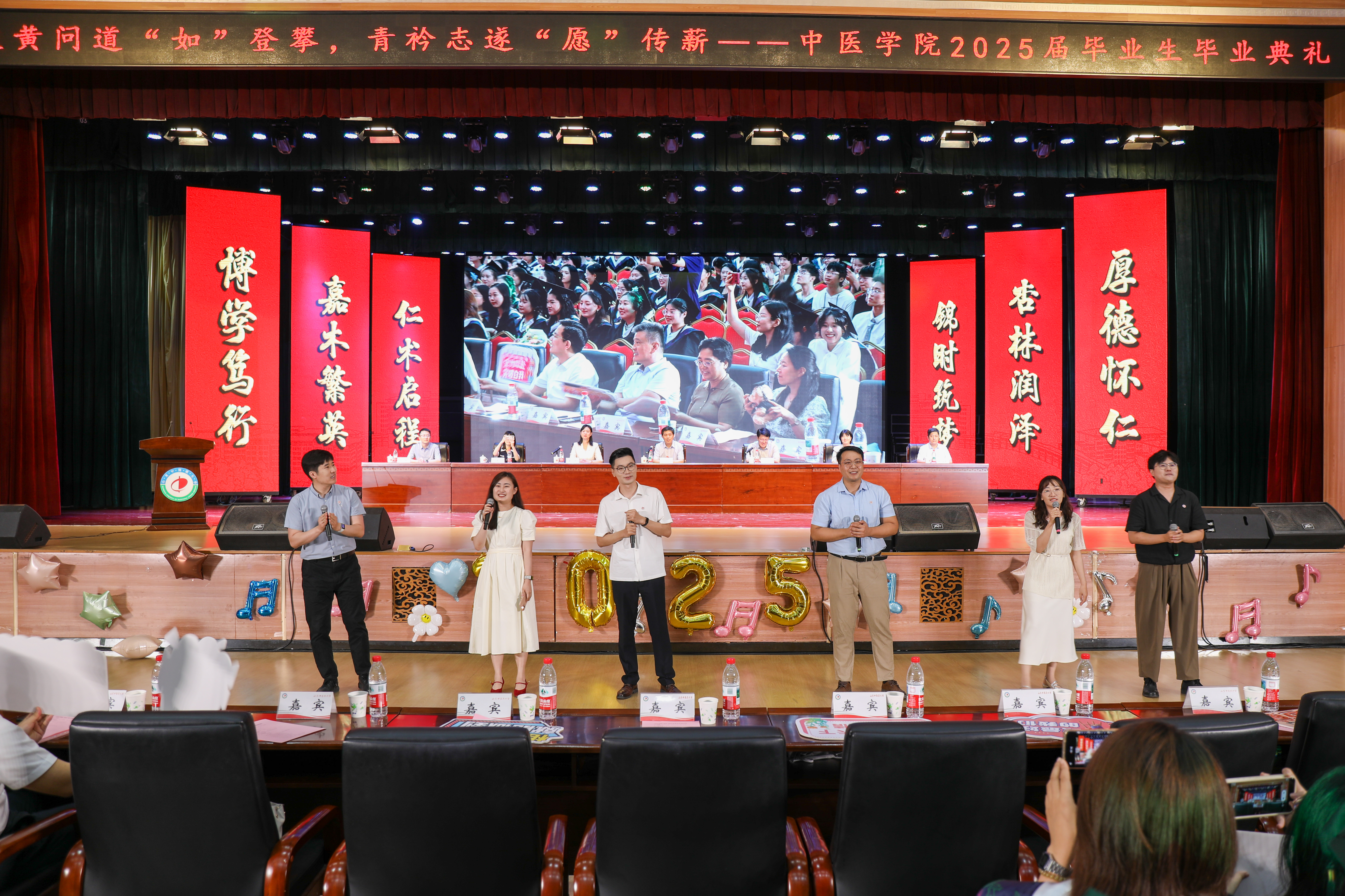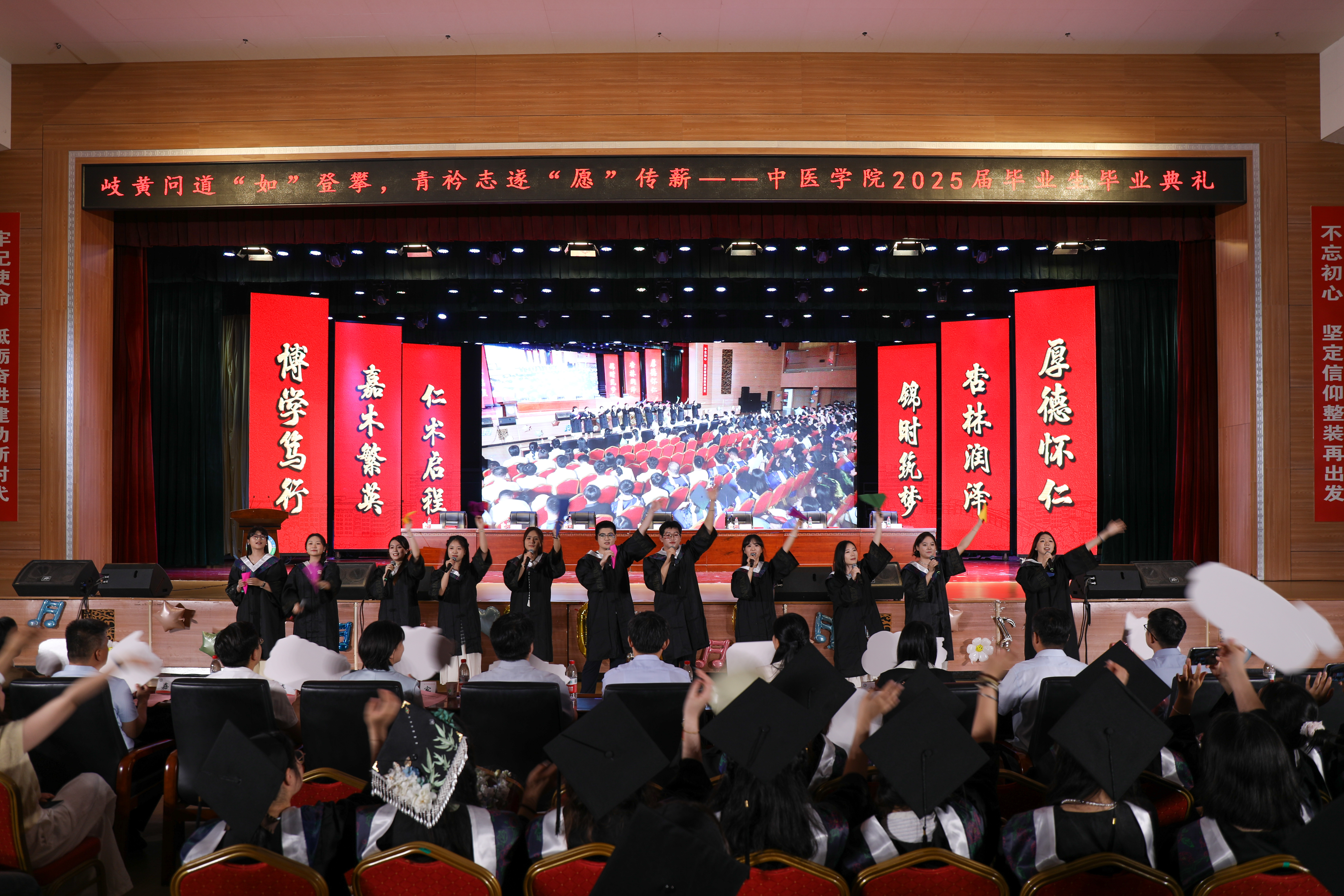 毕业生五年来取得的优异成绩,并以中医文化精髓为引,向全体毕业生提出三点殷切期望:一要永葆“悬壶济世”的医者温度,筑牢服务社会的责任担当;二要恪守“大医精诚”的职业操守,以高尚医德丈量人生高度;三要秉持“守正创新”的发展理念,在传承中开拓进取。为即将踏上新征程的学子们上了一堂生动而深刻的“最后一课”。