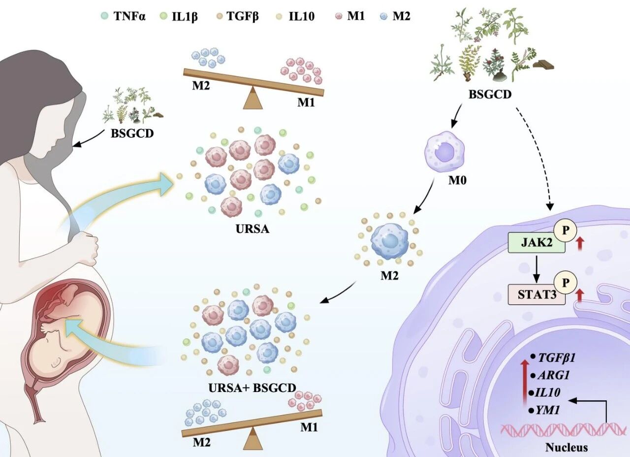 中医学部李霞教授团队在中医药免疫调控研究领域再创佳绩,在国际医学领域杂志Phytomedicine(中科院1区Top,IF:8.3)发表题为“Bushen Guchong decoction facilitates M2 polarization through JAK2/STAT3 for URSA treatment”的研究论文。该研究系统揭示了临床有效方剂补肾固冲汤(BSGCD)通过重塑母胎界面免疫耐受治疗原因不明复发性自然流产(URSA)的作用机制。中医学部刘泳琳硕士、青年教师刘鑫馗及朱肖肖博士为共同第一作者,李霞教授、张振副教授为共同通讯作者,快猫短视频