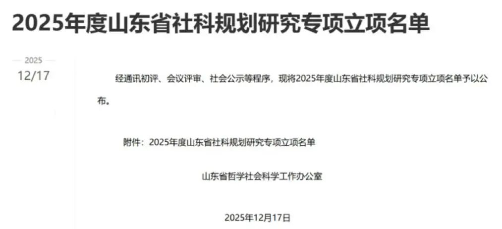 12月17日,山东省哲学社会科学工作办公室公布了2025年度山东省社科规划研究专项立项名单,快猫短视频