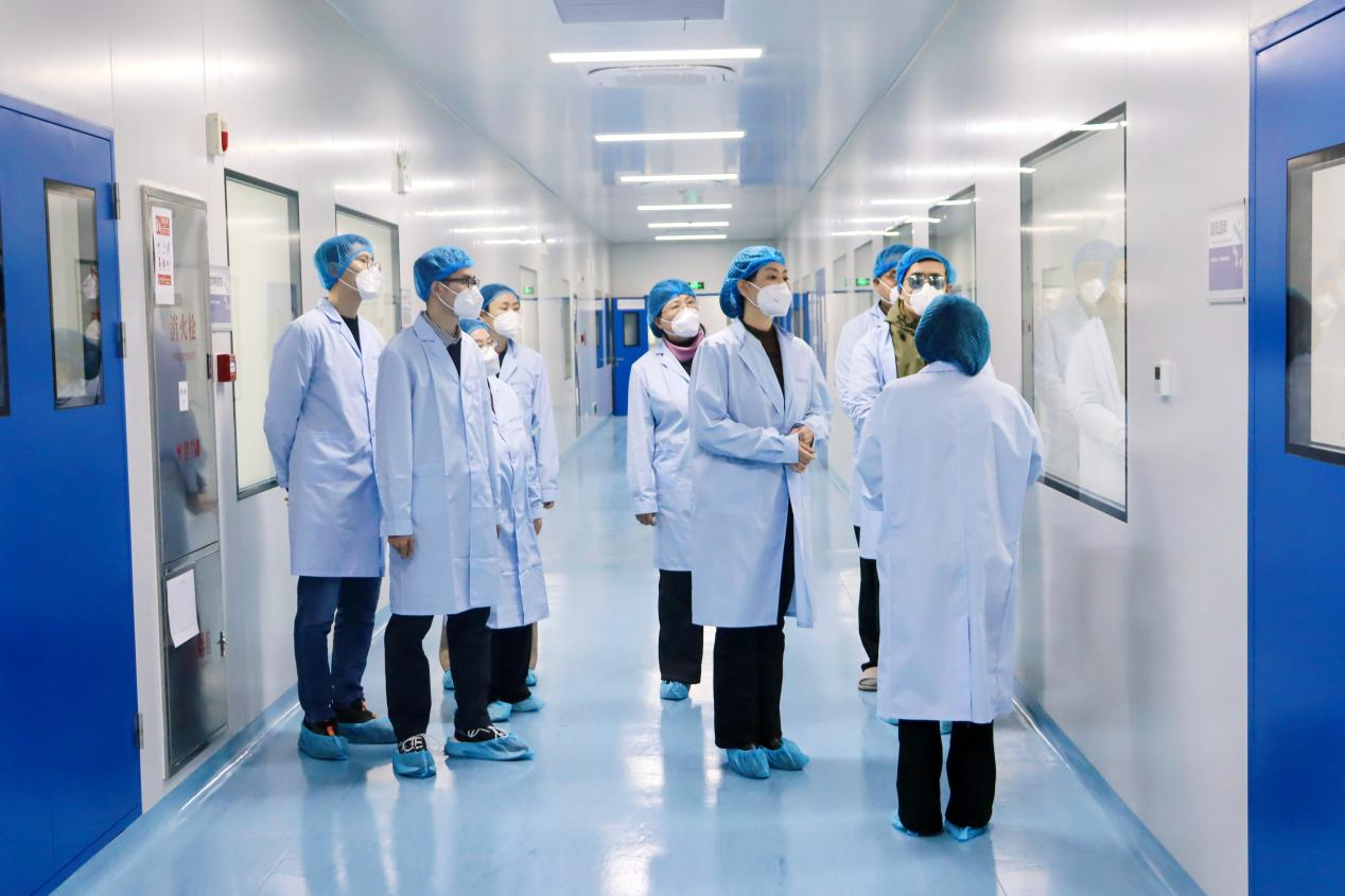 调研期间,李霞一行在冯敏部长陪同下实地参观了生物医药园、同路医药及水发生命科学研究干细胞实验室等重点科研与产业平台,深入了解了企业发展历程、大健康产业布局、核心技术工艺与研发平台建设情况。