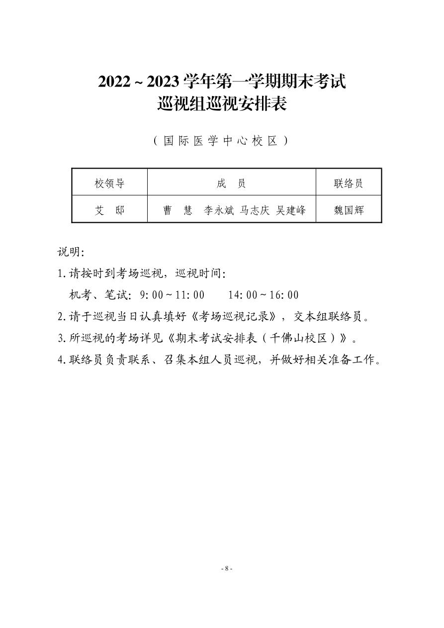 附件4:2022~2023学年第一学期期末考试集中安排一览表(国际医学中心校区)(教师用表).xls