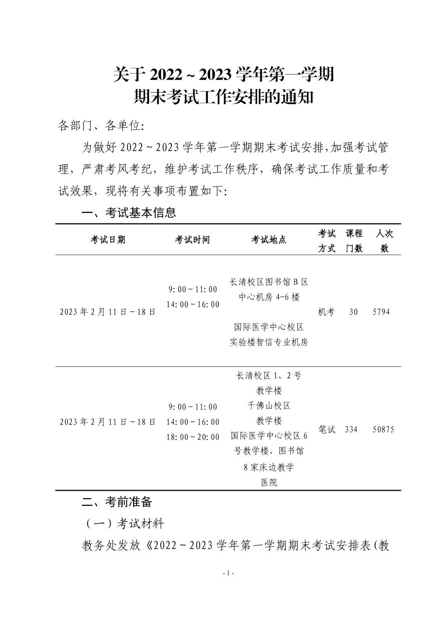 关于2022~2023学年第一学期期末考试工作安排的通知