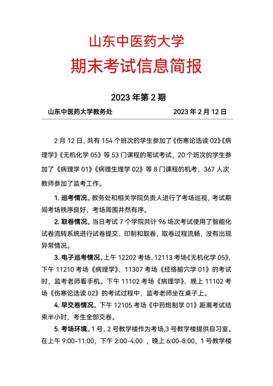 2022~2023学年第二学期期末考试信息简报(第二期,2月12日)