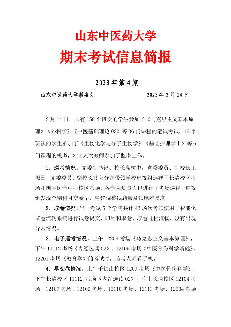 2022~2023学年第二学期期末考试信息简报(第四期,2月14日)
