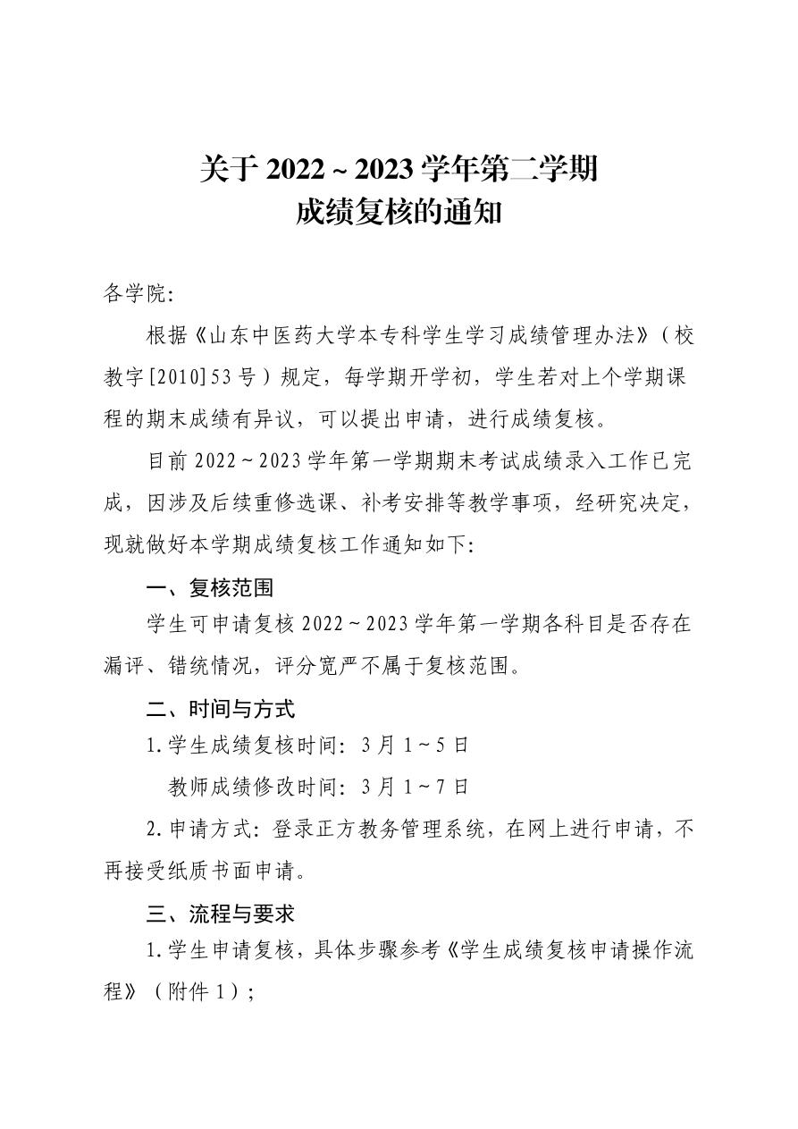 关于2022~2023学年第二学期成绩复核的通知