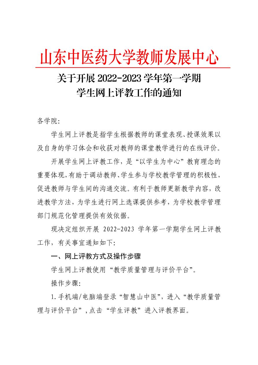 关于开展2022-2023学年第一学期学生网上评教工作的通知.pdf