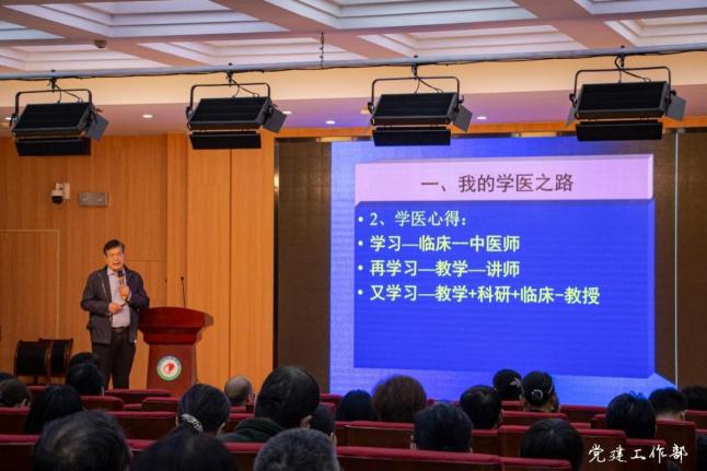 党总支书记商庆新主持,学校2021年师德标兵中基教研室张庆祥教授主讲。张庆祥教授以教学、科研的自身体会为核心,从医学求学、教学生涯、研究工作和带教工作四个方面,讲述了张珍玉老对他的影响及自身学习对教学、科研等工作的重要作用。以“学然后知不足,教然后知困”为引,强调主动学习,学用结合的重要性,他指出只有理论扎实,临床才能不慌。随后,张庆祥教授就如何成为一位厚德博学的老师,提供了具体的思路和方法。他提出作为一名教师应当努力做到学无止境,淡泊明志,多做学问,不争名利,才能根深叶茂,不断进步。他还大力提倡研读经典,重视传承,开展启发性教学,教学过程中要重视实验研究,加强学术交流,为教师的教学工作提供了宝贵的经验和建议。