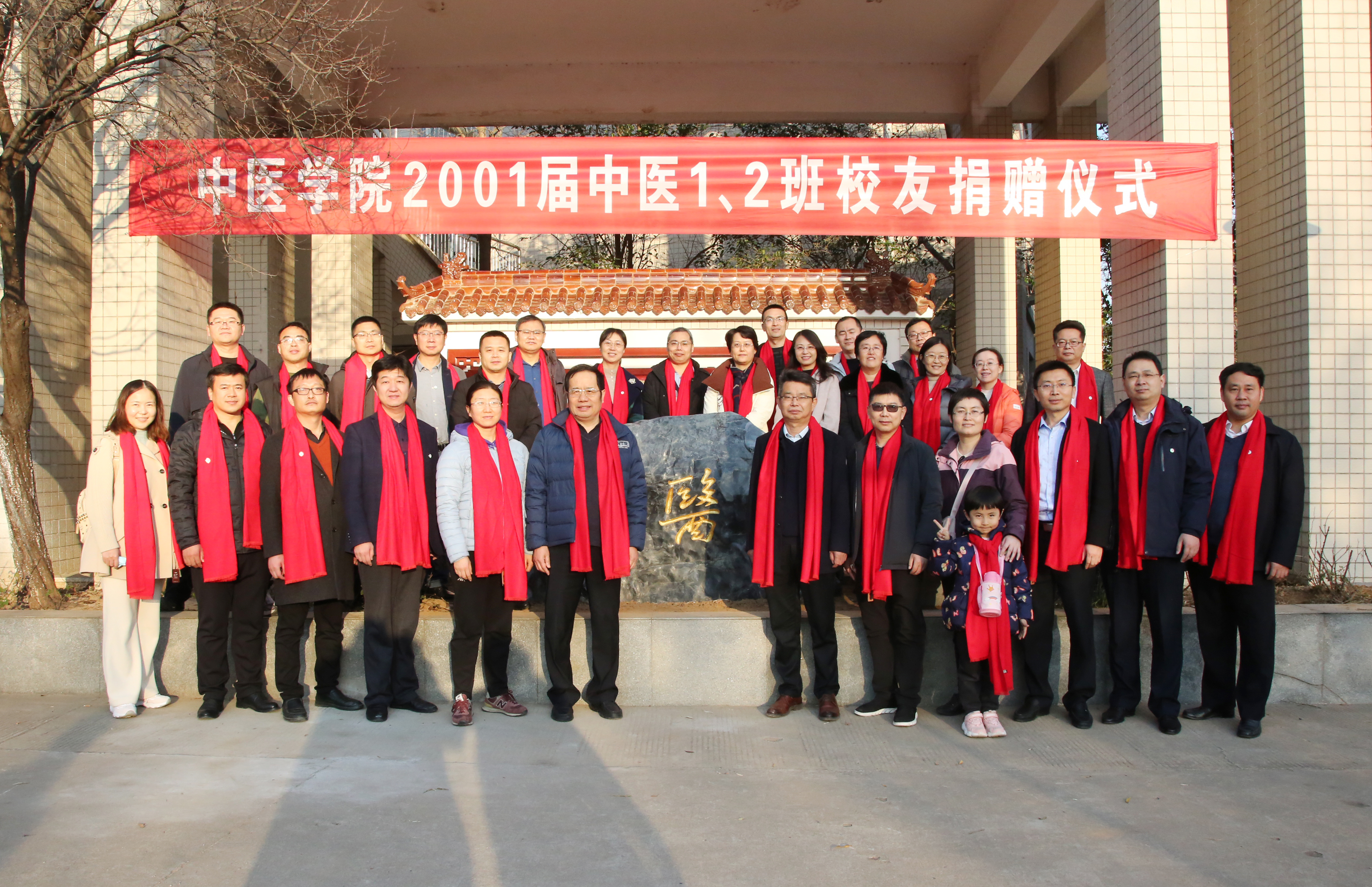 2001届中医1、2班30余名校友返校举行毕业20周年纪念活动,并向母校捐赠文化石。
