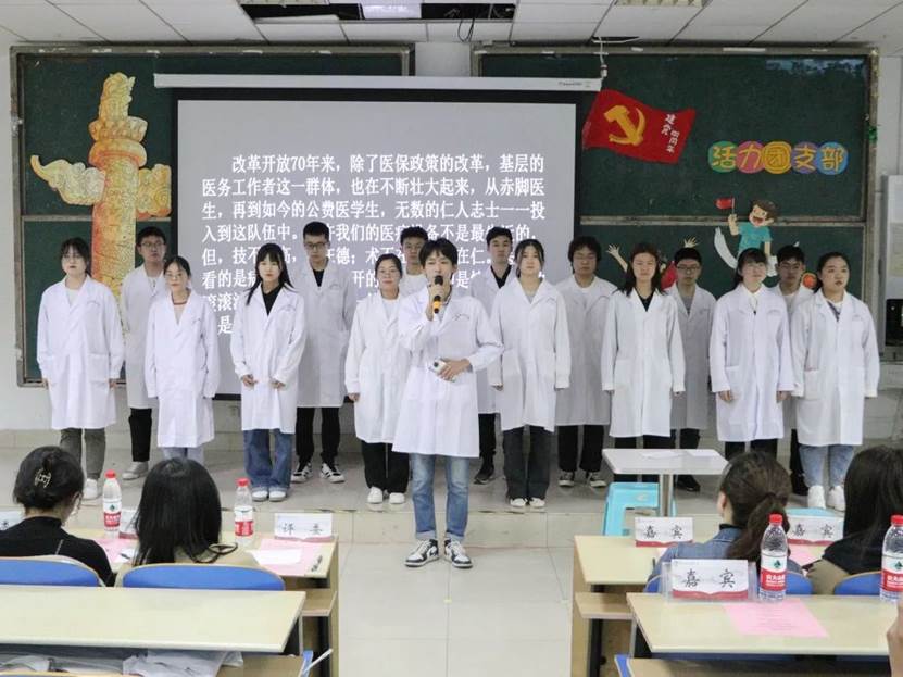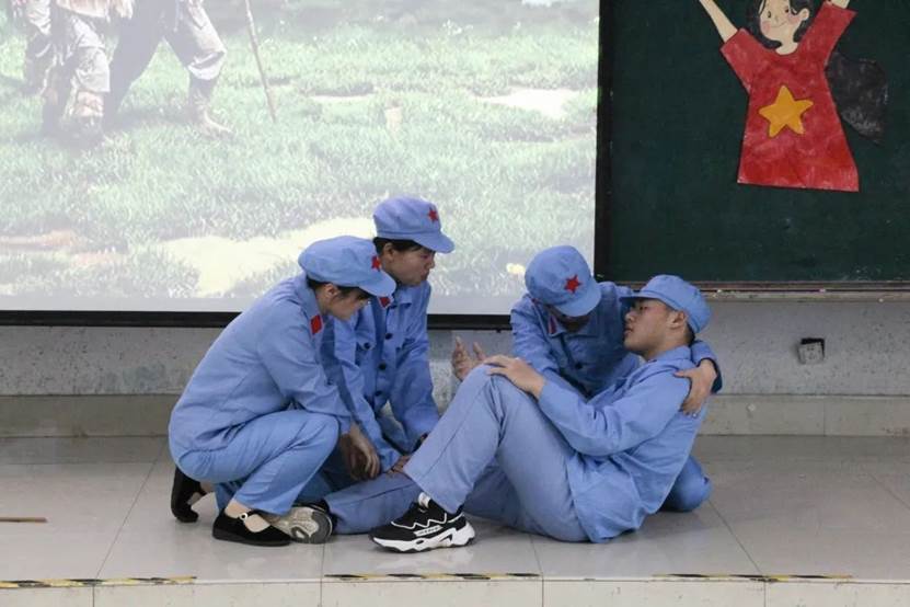 2020级中医学五年制02班团支部通过对入选课文的经典片段《金色的鱼钩》进行情景式展演,再现了长征路上老班长对战友的关怀和照顾,充分表现出长征路上的艰辛和困苦,以及老党员同志对新党员和青年的关心,为新时代党员做出了良好的表率作用。