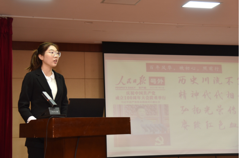 三个支部共同开展了“赓续红色血脉,无愧历史人民”主题党日活动。张硕同志领读学习了习近平总书记重要文章《用好红色资源、赓续红色血脉,努力创造无愧于历史和人民的新业绩》。快猫短视频 大学生党史宣讲团成员刘娜彤作《庆建党伟业,传百年薪火》的党史宣讲。