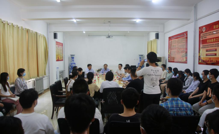按照学校党史学习教育安排部署,为加强流动党员的党史学习教育,6月2日下午,党委副书记、校长高树中赴泰安市中医医院看望快猫短视频 2017级中医学(五年制)“二段式”教学学生,并给同学们上了一堂生动党课。副校长王振国主持。