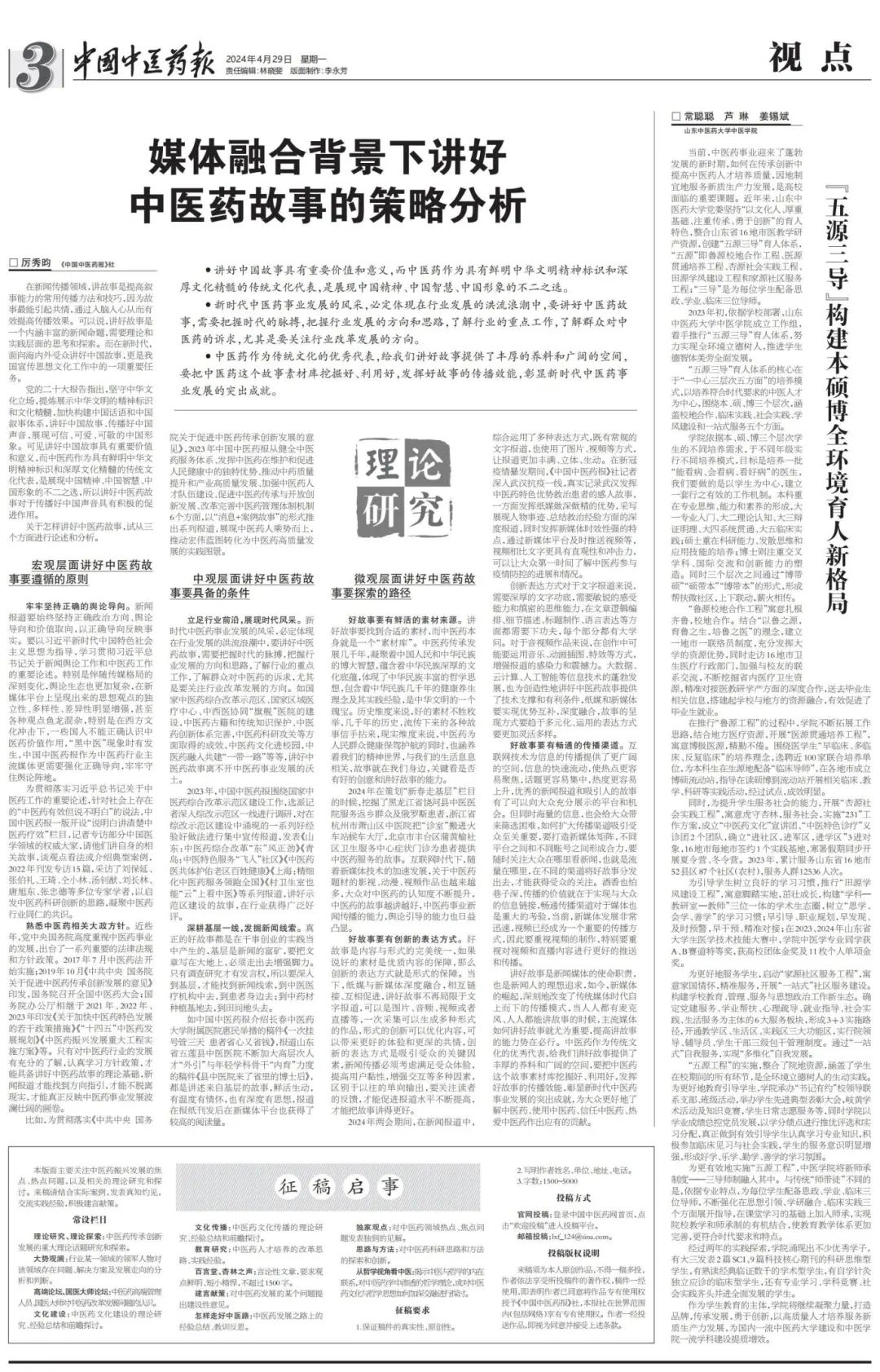 中国中医药报刊发快猫短视频 “五源三导”育人体系文章