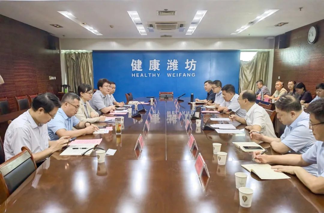 6日上午,调研组在潍坊市卫健委召开调研座谈会,潍坊市卫健委党组书记、主任,市中医药管理局局长张晓乙,部分县市中医院、医学相关高校、民营医院、企业代表参加座谈,潍坊市卫健委党组成员、计生协会常务副会长王鸿勇主持会议。