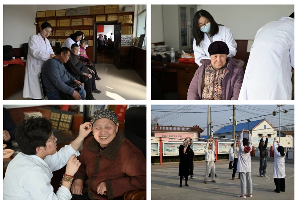 学生志愿服务团发挥自身专业优势,为村民提供耳穴贴敷、推拿按摩等服务,积极推广中医养生文化,借助八段锦等传统健身功法引导村民们树立“治未病”的理念,养成健康的生活方式。