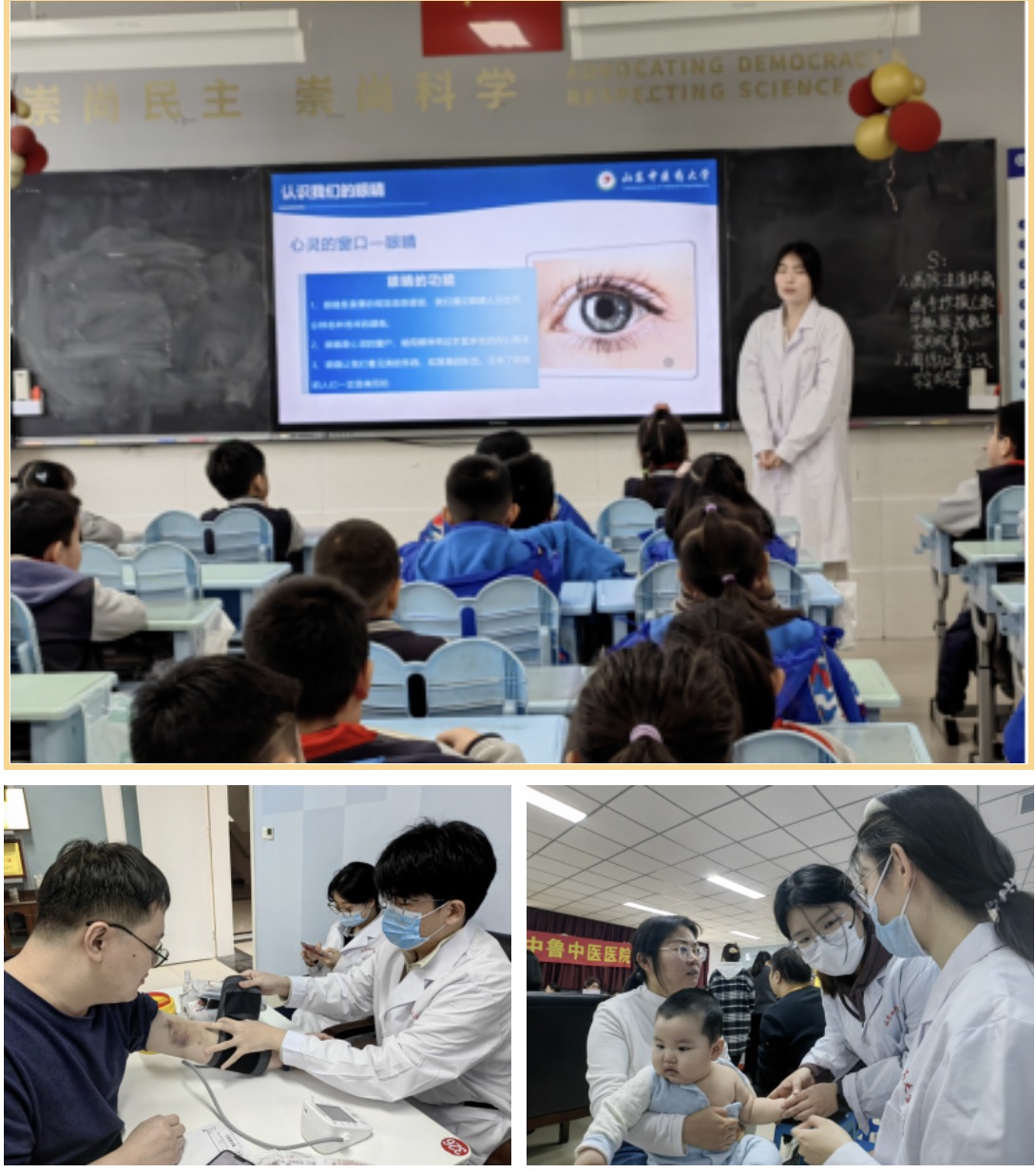 以及山东新中鲁中医医院、济南智善心理医院,共同组织师生志愿者20余人,来到济南市长清区博园小学开展“杏韵仁术山东行——雷锋月” 健康义诊活动。济南市长清区博园小学党支部书记、校长刘冬梅,党支部副书记、副校长周广华,副校长覃杨出席活动。