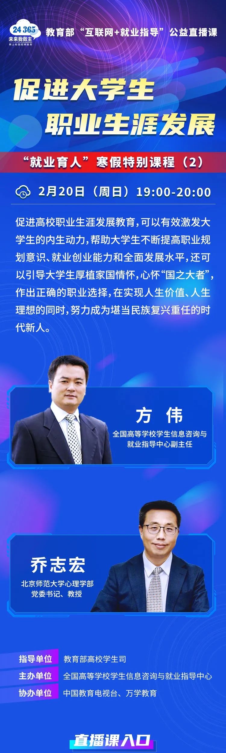 课程预告 | 教育部24365就业公益直播课:促进大学生职业生涯发展——“就业育人”寒假特别课程(2)