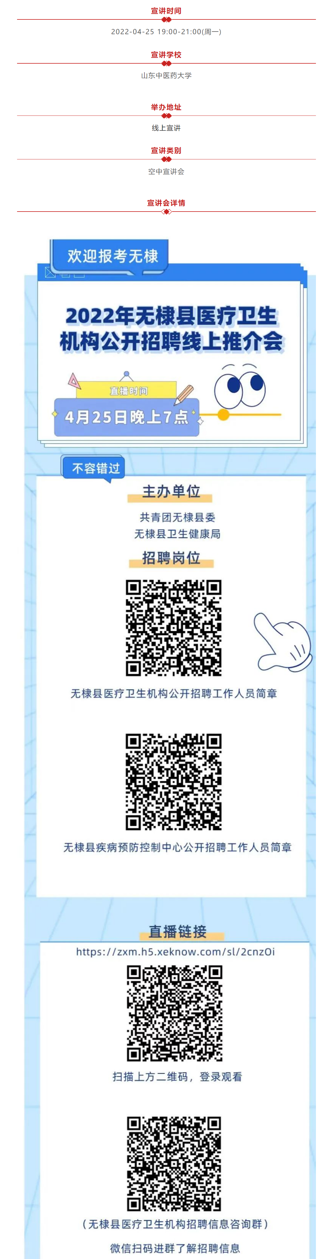【宣讲会】2022年无棣县医疗卫生机构公开招聘线上推介会