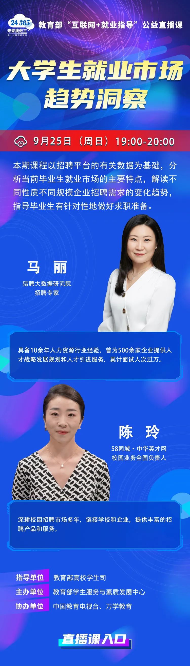 课程预告 | 教育部24365就业公益直播课:大学生就业市场趋势洞察