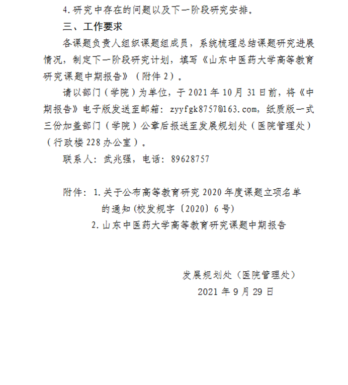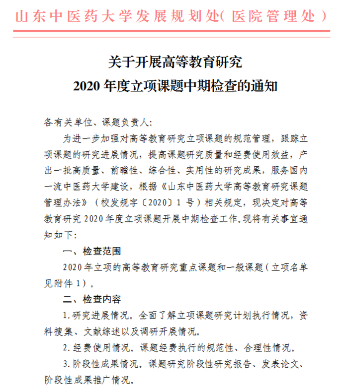 关于开展高等教育研究2020年度立项课题中期检查的通知