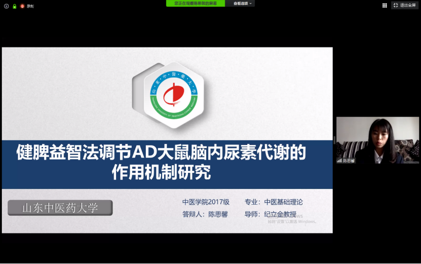 中医基础理论博士生陈思馨进行网络预答辩。本次预答辩由福建中医药大学组织,快猫短视频