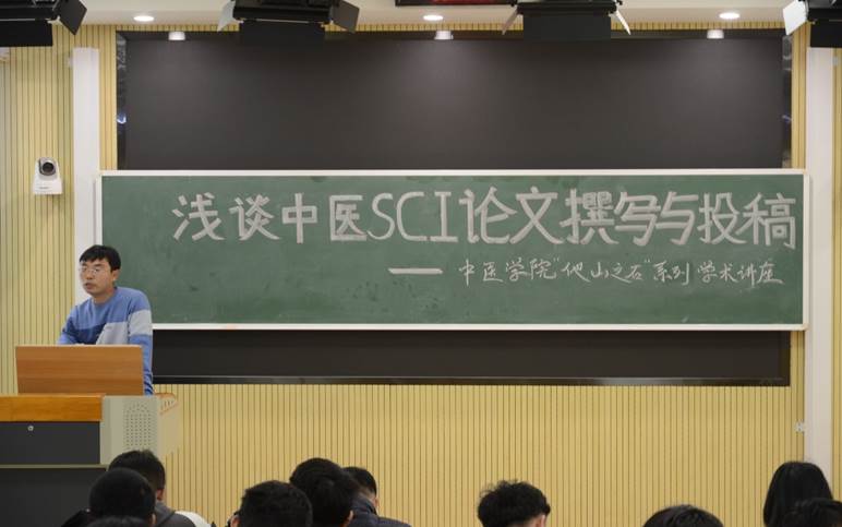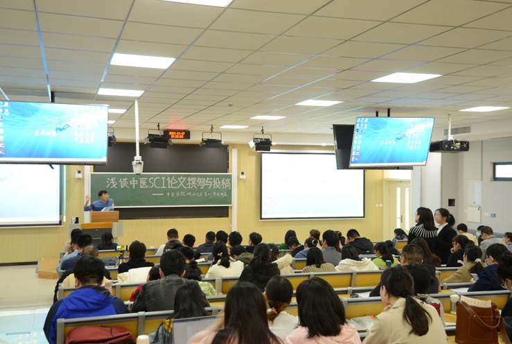 马柯副教授从自身多年SCI论文撰写和投稿的经验出发,以“浅谈中医SCI论文撰写与投稿”为主题,围绕“研究思路”“中医SCI综述撰写”“中医SCI实验性论文撰写”“SCI论文投稿”“相关数据库网址”等内容进行了精彩的讲解。讲座之余,马老师对现场学生提出的问题进行了耐心解答。