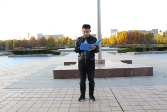 学生代表刘光辉在国旗下发表“青春报家国,奋进正当时”主题演讲
