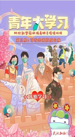 习近平总书记寄语中国青年“青春由磨砺而出彩,人生因奋斗而升华”,并对疫情中积极响应党的号召,踊跃投身疫情防控人民战争、总体战、阻击战,不畏艰险、冲锋在前、真情奉献的当代中国青年,提出了高度赞誉。
