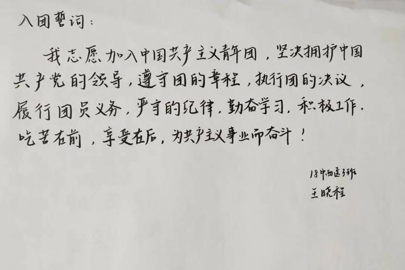 为深入学习宣传贯彻习近平总书记关于疫情防控工作的系列重要讲话和指示批示精神,更好的引领快猫短视频 广大青年坚定理想信念,站稳人民立场,练就过硬本领,成为担当民族复兴大任的时代新人,校团委在五四青年节期间组织开展“绽放战疫青春·坚定制度自信”主题宣传教育实践活动。快猫短视频 响应活动号召,组织学生代表回顾抄写入团誓词,继承弘扬五四精神,争做时代新青年。