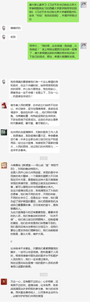 同学的回信》《习近平总书记给北京大学援鄂医疗队全体“90后”党员的回信》,团员们认识到疫情就是命令,生命重于泰山。在习近平总书记心中,人民群众生命安全和身体健康始终居于第一位。疫情发生以来,总书记多次召开会议、听取汇报、作出重要指示,亲自指挥、亲自部署防控工作。心系万家冷暖,情牵百姓安危。与人民同呼吸、共命运、心连心--这就是众志成城的中国力量,就是我们战胜疫情的最大底气。同时我们要向疫情期间坚守在岗位上最可爱的人致敬,是你们放弃了回家团圆的机会,坚守在岗,奔波在第一线,用汗水对抗着疫情,捍卫着人民群众的生命健康。相信万众一心在大家的共同努力下,我们必将会冬去春来,迎来春暖花开。