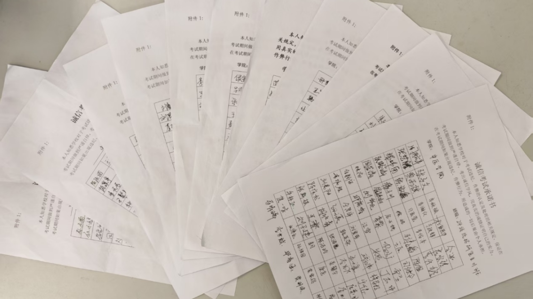全体学生郑重签署《诚信考试承诺书》,以书面形式承诺在考试中严格遵守考场纪律,自觉抵制一切作弊行为。