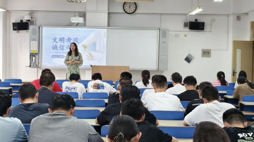 各班级通过主题班会形式,由辅导员系统讲解考试注意事项,考试作弊的认定标准、处理流程及违纪后果,并结合典型案例警示学生恪守诚信底线。辅导员们还着重强调了诚信应考的重要意义,并为同学们提供了科学备考建议。